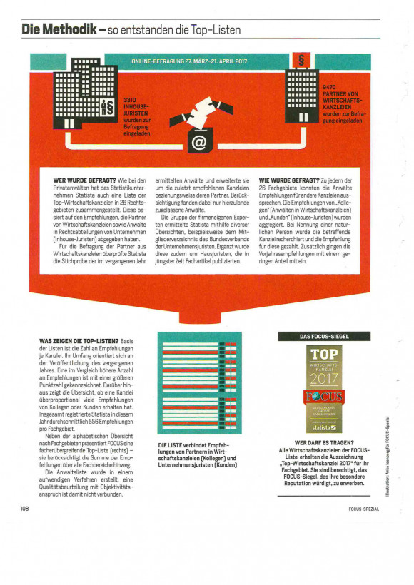 Schwandt: Anwaltliche Qualität ist sehr subjektiv und schwierig zu „messen“. Als sehr verlässliche Indikation haben sich - auch in anderen beratenden Branchen - Kollegenempfehlungen herausgestellt. Entsprechend messen nicht wir die Qualität, sondern es sind die Branchenexperten selbst, die mit ihrem Marktverständnis in den einzelnen Beratungsfeldern durch ihre Empfehlungen indizieren, wer in der Branche für Qualität steht. Hierzu haben wir für den Focus zwei umfangreiche und repräsentative Befragungen durchgeführt: Von den ca. 30.000 Fachanwälten in den genannten Fachgebieten wurden über 16.000 angeschrieben und über 4.200 haben geantwortet. Zudem haben wir über 7.100 Partner von Wirtschaftskanzleien angeschrieben, von denen über 2.700 Partner Empfehlungen zu Wirtschaftskanzleien ausgesprochen haben. Unseres Wissens gab es noch nie eine so umfangreiche Befragung zu Kollegen in Deutschland.
